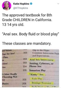 Both Arizona and California, sex education programs focus on LGBTQ issues. Critics have argued that the curriculum goes beyond the stated purpose of teaching tolerance, and many believe it is indoctrination. When parents decide to be proactive and learn what is being taught, they find themselves in a living nightmare. There is little doubt that whatever the intended purpose of this new model of “Comprehensive Sex Education is, it is being delivered to children who are far too young.